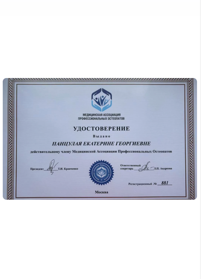 2011 г. Сертификат профессиональной переподготовки «Стоматология ортопедическая” (ММГСМУ)